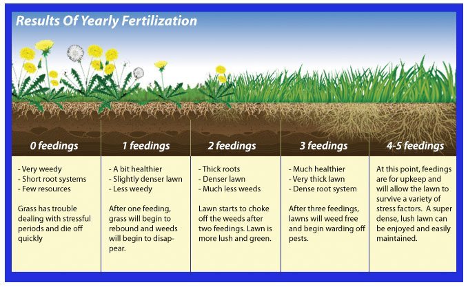 - Fertilize 2–4 times per year depending on grass type and soil condition — typically spring and fall for cool-season grasses, late spring and summer for warm-season lawns.